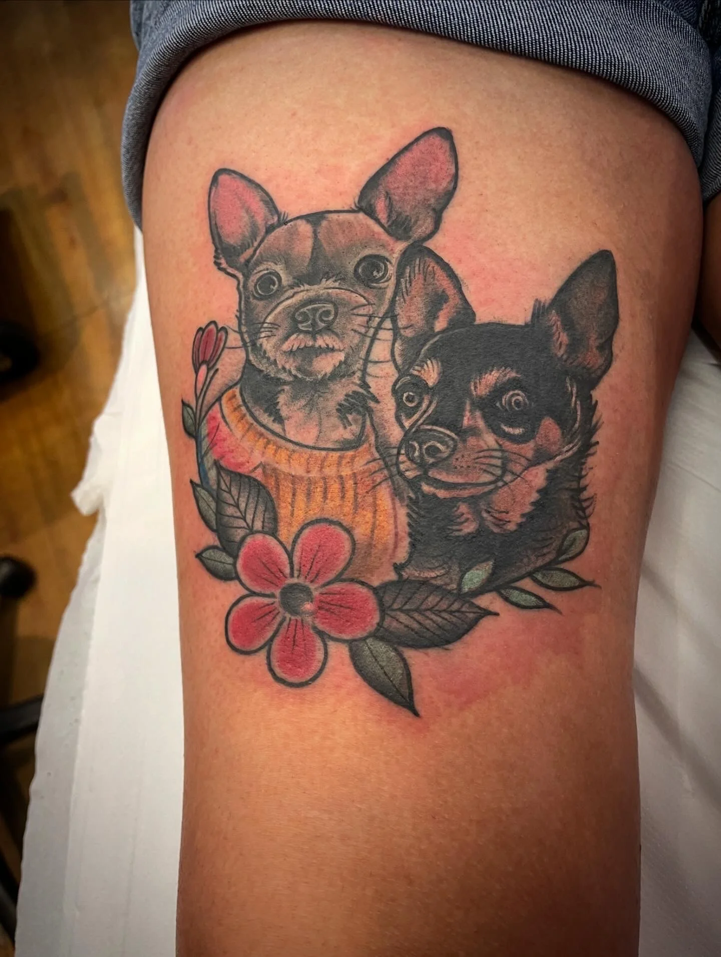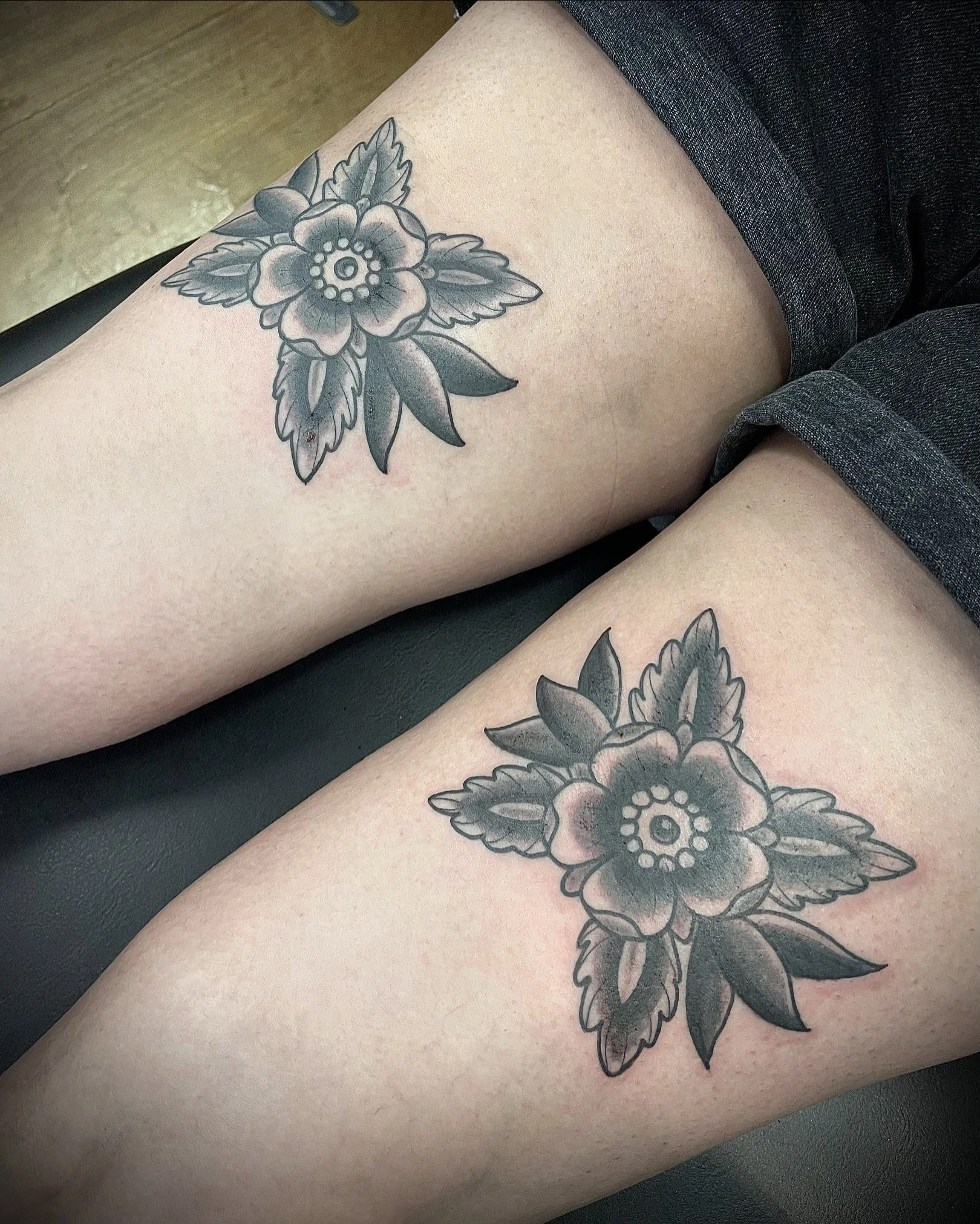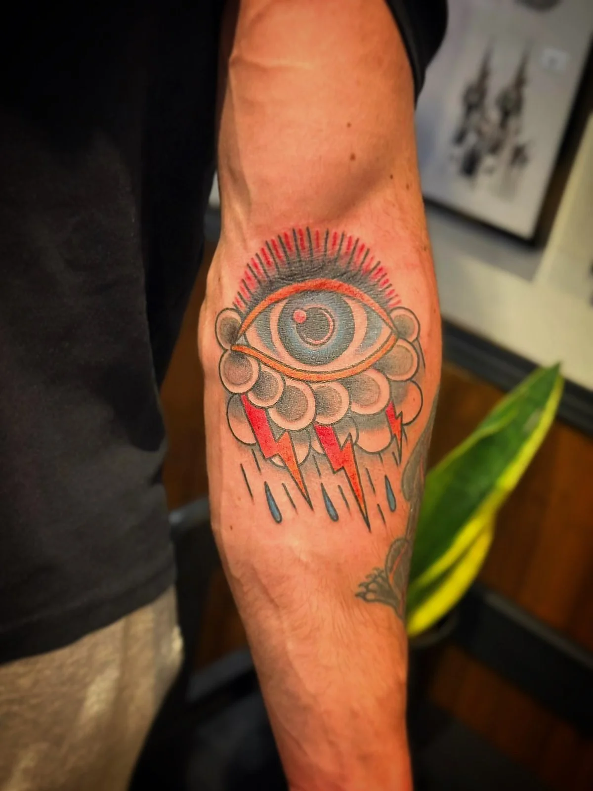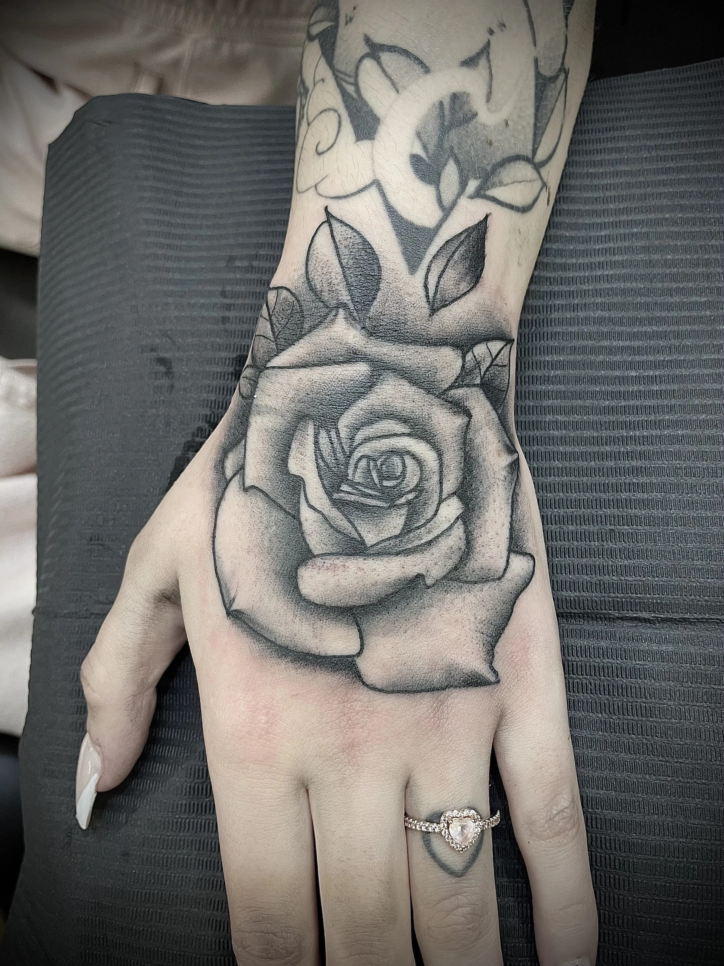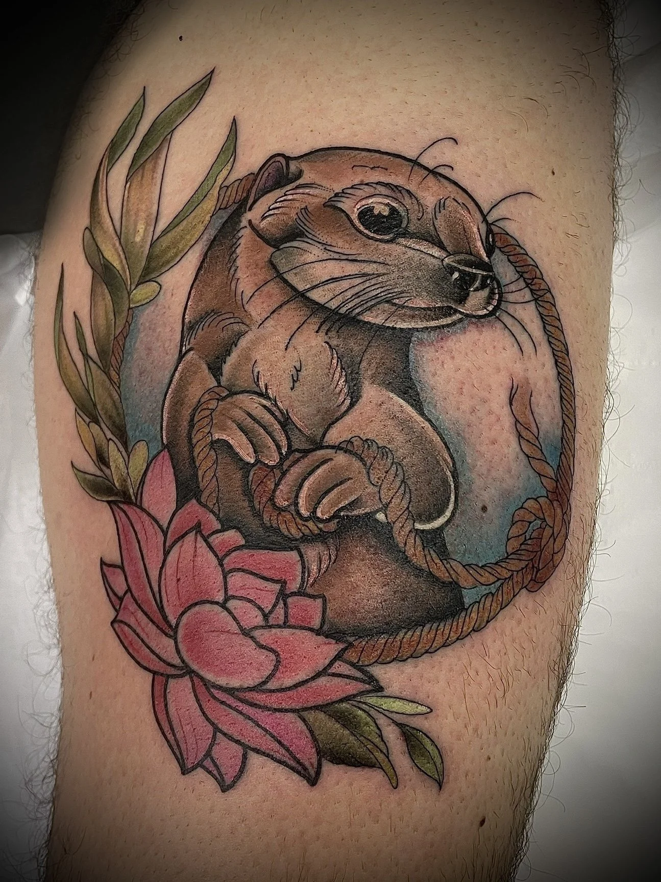 His favourite styles to tattoo are traditional and Japanese, done in his trademark bold colourful style, as well as specialising in black and grey portraits, and custom lettering. His work also takes influence from his love of wrestling, punk rock, and comic art as well as more traditional tattoo sources. Keeping up a love and respect for the traditional roots of tattooing, he enjoys painting water colour tattoo flash, and is also a skilled sign writer, hand painting lettering on anything from leather jackets to shop windows.